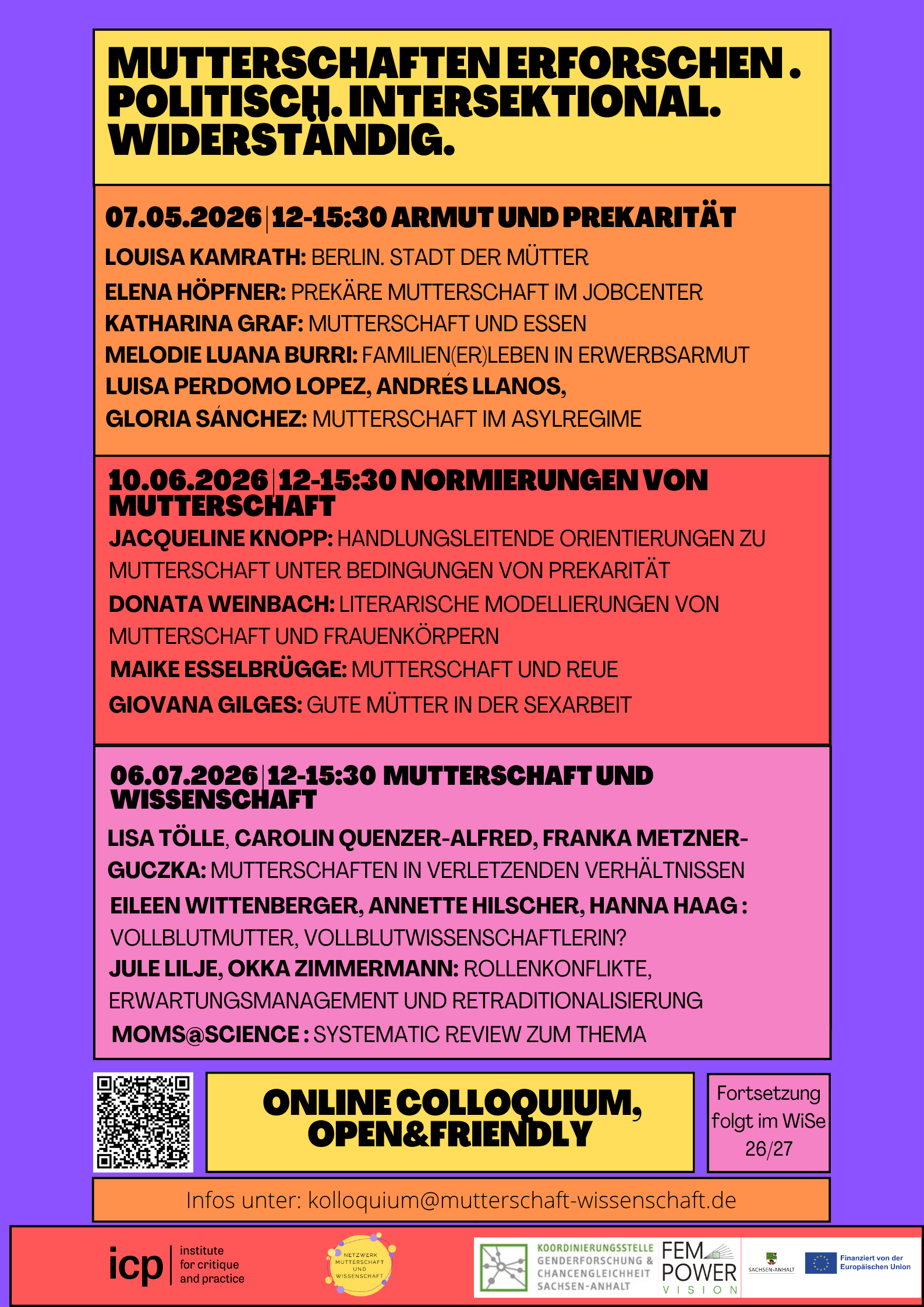 Anmeldung unter: kolloquium@mutterschaft-wissenschaft.de